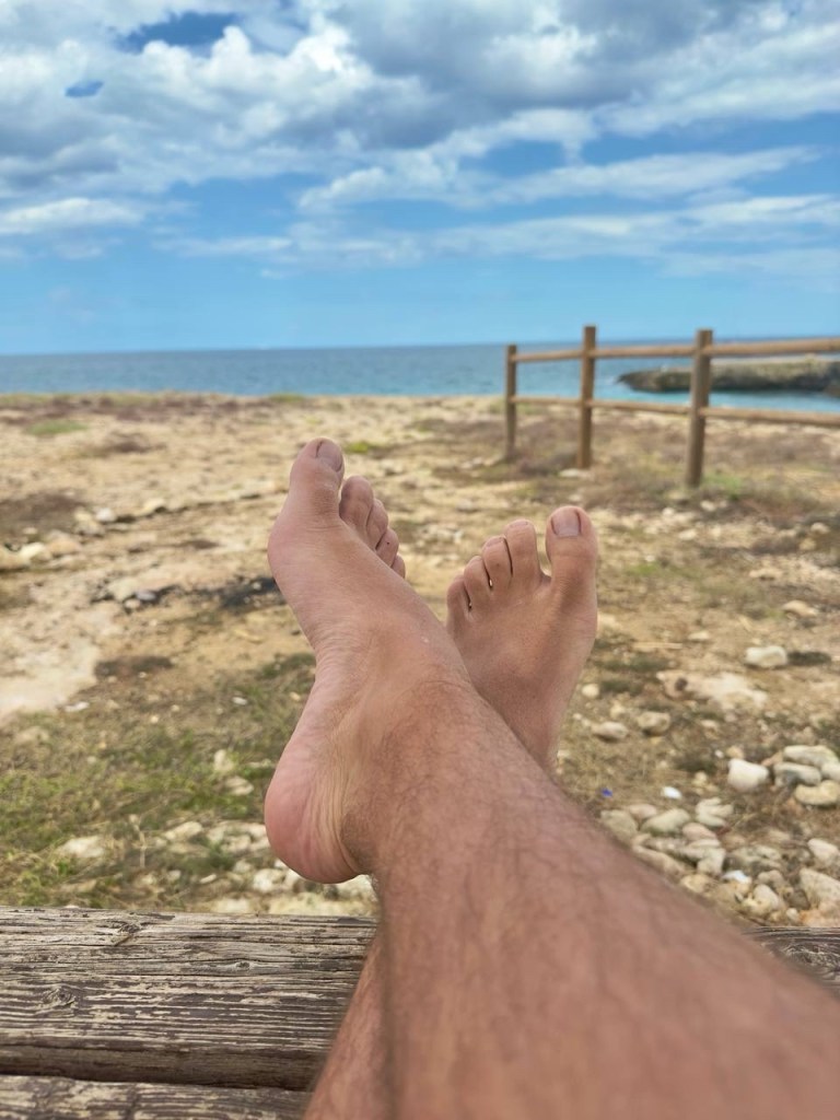 The Apulian landscape, painted by expanses of olive groves and kissed by a radiant sun, becomes the perfect stage for my barefoot walk. Every step on the warm earth becomes a tactile experience, an intimate encounter between my skin and the golden sand of the beaches, creating a visual and sensorial harmony.